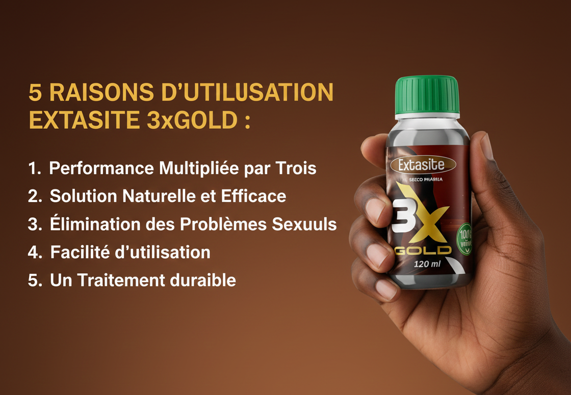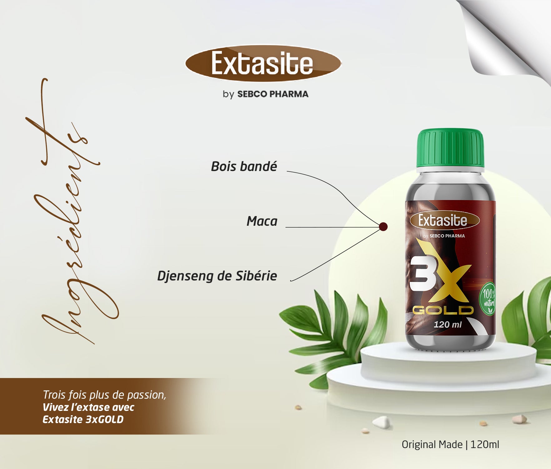 Extasite 3xGold est un produit 100% naturel composé de bois bandé, maca et djenseng de Sibérie.